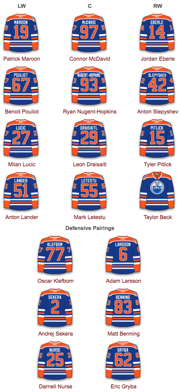 - The lines and pairings could see a lot of moving parts today, that was certainly the case in Brooklyn. I thought Patrick Maroon fit like a glove on the McDavid line and the Leon-Lucic Railroad had some good moments.