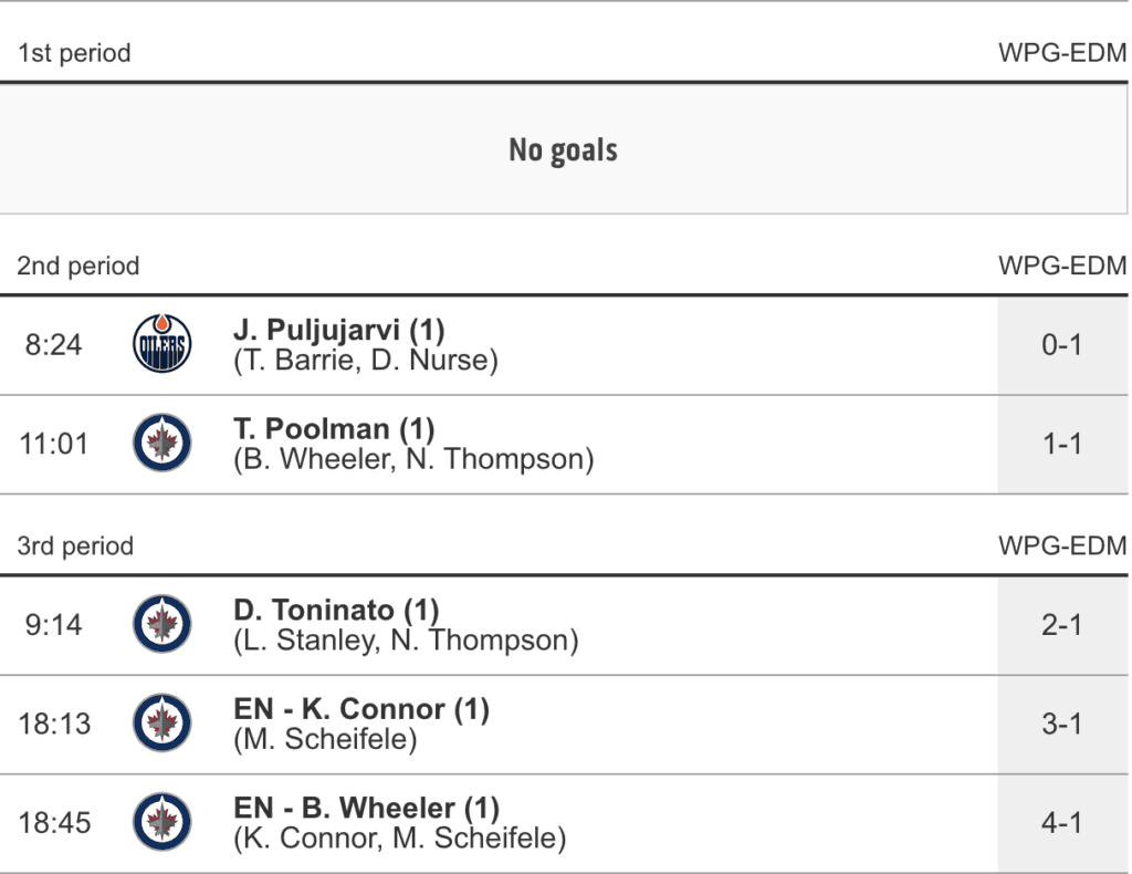 - Having Ehlers and Dubois out of the lineup was a massive opportunity for the Oilers and they did nothing with it. That’s not how you win a series, my friends.