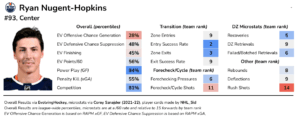 The top PP unit sees a significant increase in both goals and expected goals with Nuge on-ice in the past two seasons. He’s an extremely valuable asset on special teams.
