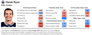 Ryan has typically been the 4C ever since, and his performance vastly improved in a sheltered role, especially defensively. Ryan is also one of Edmonton’s best forwards in regards to getting rebounds and deflections.