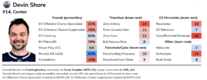 Strengths: Decent transitional/defensive microstats in a limited sample