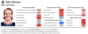 *All stats via EvolvingHockey, and all microstats via Corey Szjadner’s tracking project unless stated otherwise