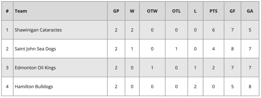 The Oil Kings will play the Bulldogs on Friday night and then round-robin play will conclude on Saturday with the Cataractes playing their QMJHL rivals the Saint John Sea Dogs, who are hosting the tournament. A win for Shawinigan over Sain John would give the Cataractes a bye to the finals while a win for the Oil Kings over Hamilton would eliminate Hamilton and guarantee Edmonton a spot in the semi-final.