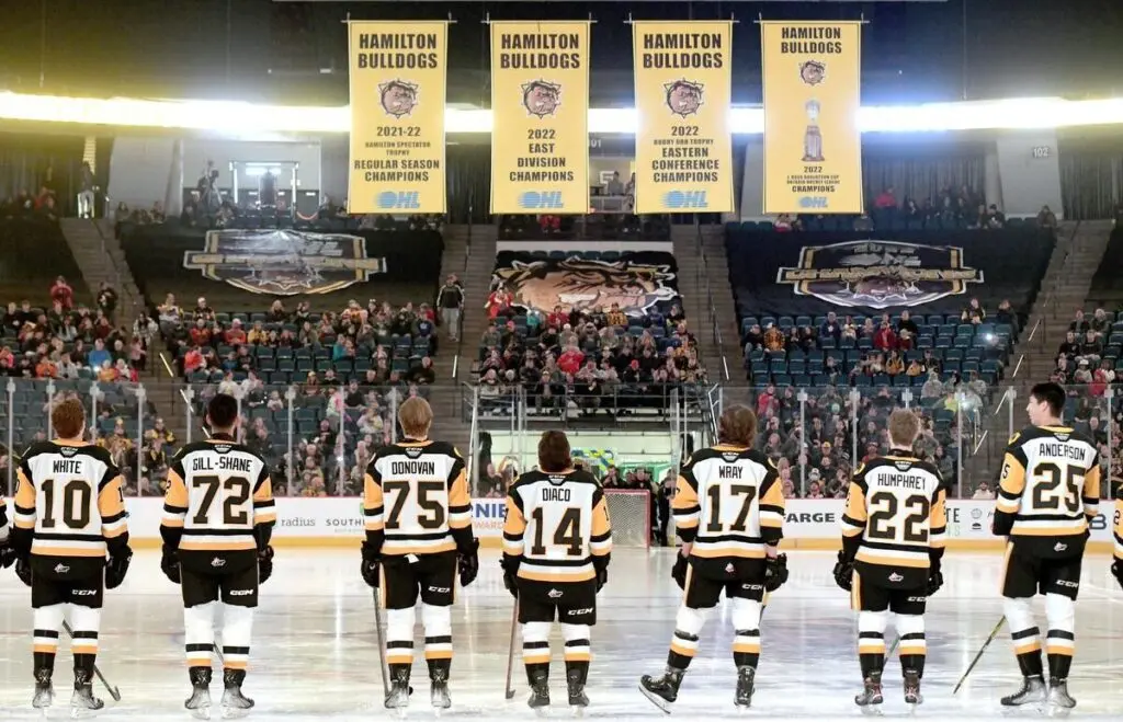Banner raising ceremony for the OHL Hamilton Bulldogs.