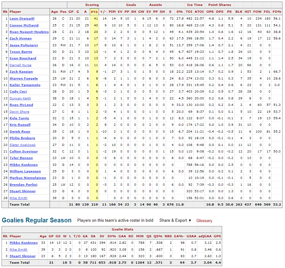 Edmonton beat Vegas on the road last Saturday while the Nation partied and Wednesday beat Pittsburgh despite playing one of the most boring games I’ve ever watched. In that stretch, however, the Oilers powerplay cooled off a little bit but still operated at a 23.8 percent clip. The penalty kill remained strong, too.