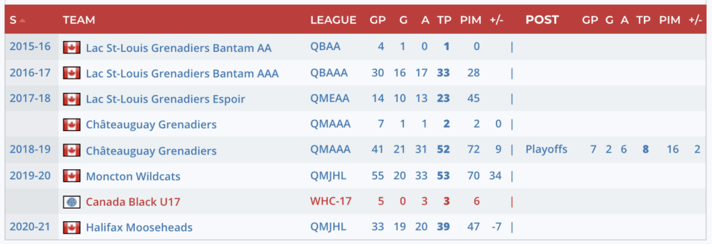 “L’Heureux is an interesting player. He is very talented and when he is competing hard, he is a skilled grinder that can have a positive impact every time he is on the ice. However, L’Heureux is not a complete player and is not always fun to watch when you can tell he is phoning it in in. Breaking down his skillset, L’Heureux is a great skater. He has a very powerful stride and low center of gravity that makes him hard to knock off the puck. L’Heureux uses this to his advantage to get inside body position when he drives hard to the net. He also has a very quick first step and accelerates well using linear crossovers. While his shot is largely recognized, L’Heureux is a better playmaker in my opinion. He has great vision and awareness, he regularly shoulder checks and always knows where his teammates are on the ice. He’s a strong passer on his forehand and commonly makes great passing plays off his backhand when he is around the half boards. He has good poise with the puck and shields it well before passing it. He can thread the needle through traffic. He knows when to pass the puck and makes his teammates better with his up-ice vision. He will often set them up on 2 on 1’s. L’Heureux also has very good hands and can execute quick skillful dekes around defenders off the rush. In this game he pulled off a very nice toe drag and then held off another defender before sliding the puck cross crease for a primary assist. The main two issues with L’Heureux are is compete and discipline, which both can be finicky at times. However, he is a very skilled player who has a good IQ and overall head for the game. He knows how to play at a high level. If he can work on his attitude and focus on showcasing his talent, he will be a steal for any team that drafts him.” – Sebastian Death