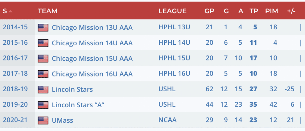 With just 62 points in 106 games during his USHL career, Lopina’s offense was nothing too impressive prior to making the jump to UMass. But that transition to college couldn’t have been any more seamless. In 26 games, Lopina finished sixth in team scoring with 23 points en route to an NCAA title and league rookie of the year award. Lopina played a solid role for UMass during the team’s run to the national title, but he also previously looked great as a defensive center for USA at the World Junior A Challenge and his mix of hard forechecking and penalty kill prowess could result in him getting some NHL attention down the line. If he’s not selected this year, he’ll be a future NCAA UFA target. – Steven Ellis, Sports Illustrated