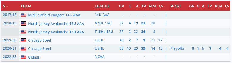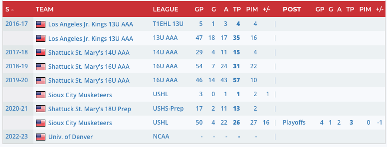 “Playing an average of 25 minutes of ice time on both the PP and PK, Ufko is heavily relied on and is effective in the offensive and defensive zone. Ufko is an agile skater who is elusive enough to navigate his way through the neutral zone to create offensive zone entries. He has a very good ability to change direction quickly and is able to play at a high pace and keep up with opponents. Ufko is a good shooter who has an accurate one-timer with good power. He’s able to pick corners from the point and consistently get shots through traffic and on net. Ufko sometimes struggles handling the puck in-tight spaces and doesn’t always have full control, making it easier to steal. One of Ufko’s biggest weapons is his vision, consistently finding passing lanes and passing through traffic on target. He’s also very consistent at accurate breakout passes and starting rushes for his team. He makes effective passes in all zones to keep puck possession and control, not forcing passes when its not necessary. Ufko is very mobile on the blue line and is constantly looking for open space to give his teammates a passing option. He has good patience with the puck and understands what to do under pressure, making smart plays to find space away from opponents, rarely creating turnovers. He is consistently reading the play in the defensive zone and is effective at identifying the open man and taking away his space. He is actively looking to block passing lanes with his stick and is willing to block shots when he needs to. He struggles to battle with bigger opponents, and isn’t as effective because of his lack of strength, but he’s still able to be physical and make a solid hit, only doing so when its appropriate. I believe if Ufko works on improving his puck control and adds more strength he will be a valuable defenseman that many teams would appreciate having.” – Dylan Krill