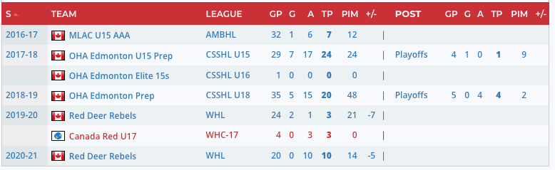 “Masters has arrived. Though Red Deer is a bit underwhelming as a whole to date, through their first 4 games Masters has been a stud. Not only has he been taxed with huge, all situations minutes right out of the gate, but he’s learning rapidly and applying lessons to each ensuing situation he’s put in. Masters projects as a puck rushing catalyst who uses his elite skating ability and deceptive puck skill to make plays out from under pressure and allow play continuity. He’s dynamic with movement and extremely agile with masterful edge work which allows him to manipulate opposition routes and creating space with a combination of heel to heel mohawk maneuvers and linear crossovers. He doesn’t seem to underhadle pucks but can change the angle of flow with quick handles and moving pucks from exposed areas to be hidden on his hip so he can make a quick pass or find a shot lane while making the play through weight shift. Although I thought that some of his plays were rather high risk by putting himself into small seams to escape pressure or by putting pucks into bad ice. Every time he went into pick up a puck he was always scanning and shoulder checking so it may simply be about making more appropriate decisions based on the layers of pressure presented and learning to curb his enthusiasm for high event hockey.” – Justin Froese