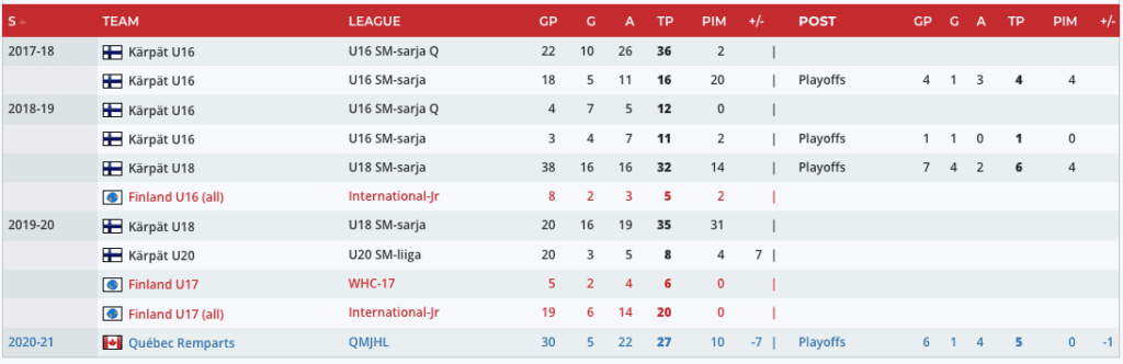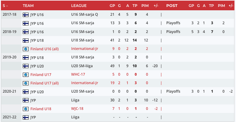 “Malinen is a fairly typical puck-moving defenseman, but the fact that he’s been sticking in the Liiga all season as a 17-year-old stands out, even if JYP is a bad team. There is some dynamism to his skating, as his crossovers and edges are pretty good, and he wants to play quick and push the pace. He’s assertive with his decision-making, making calculated risks to pinch up in the neutral and offensive zones to help his team maintain or regain possession. Gap control against the rush looks good. Shows a lot of confidence with his exits and entries, including times where he goes end-to-end. He drew a penalty in this game while driving wide around an opponent. He can work a little magic at the offensive blue line, making moves to create space and shake off defending forwards. Hands are good, albeit not great. He can receive difficult passes and make quick little moves to settle the puck down, and he can also sometimes maneuver the puck through sticks and skates or quickly chip it into space for himself. However, his success rate with these moves could be better. He also doesn’t have the strength to fight through checks with his carries, at least not yet. His decision-making in all zones needs to improve, but I think it will, because you can tell that he’s focused and alert. He knows to check over his shoulders to calculate the play around him. There is NHL upside to Malinen thanks to his tools and playing style, and I wonder if some of that is being hidden by playing against men instead of against his peers.” – Derek Neumeier