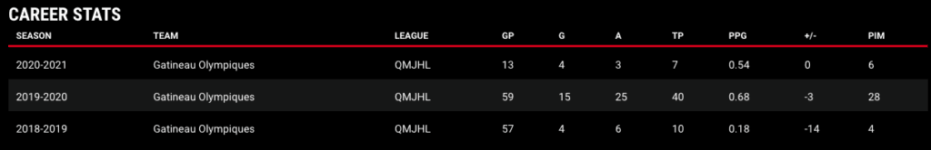 “Results seem to follow him offensively wherever he goes, but I’m blatantly concerned about the projection of Roullette’s game on his current development path. Watching clips from the last calendar year I see a lot of positives in how he is able to create offensive sequences using high-end awareness and by improving the impact of his first touch. His off-puck game is quite strong and he blends quite well and tries to hide between checks as much as possible, but feel he must cheat to get space to create. His skating is still noticeably a detrimental area of his game that hasn’t come a long way and he lacks the explosiveness and stride recovery to make efficient gains in small areas unless he’s identified an area to exploit.” – Justin Froese, FCHockey
