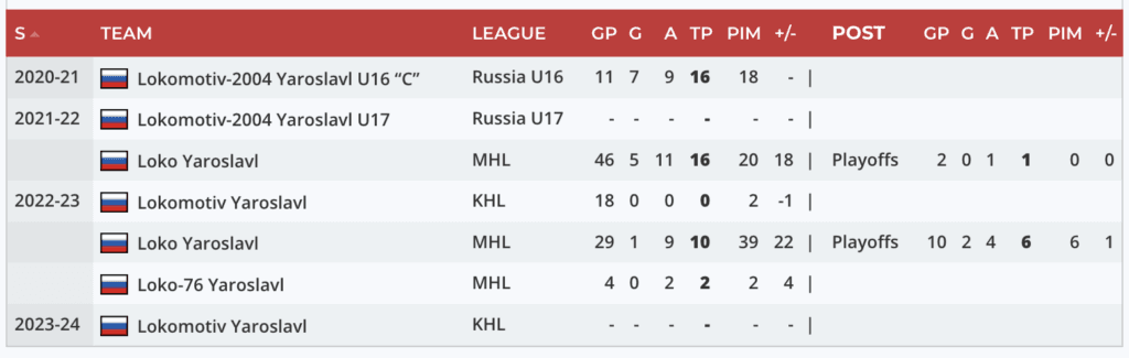 - No. 45 Noah Dower Nilsson, No. 44 Kalan Lind, No. 43 Timur Mukhanov, No. 42 Luca Cagnoni, No. 41 Jayden Perron