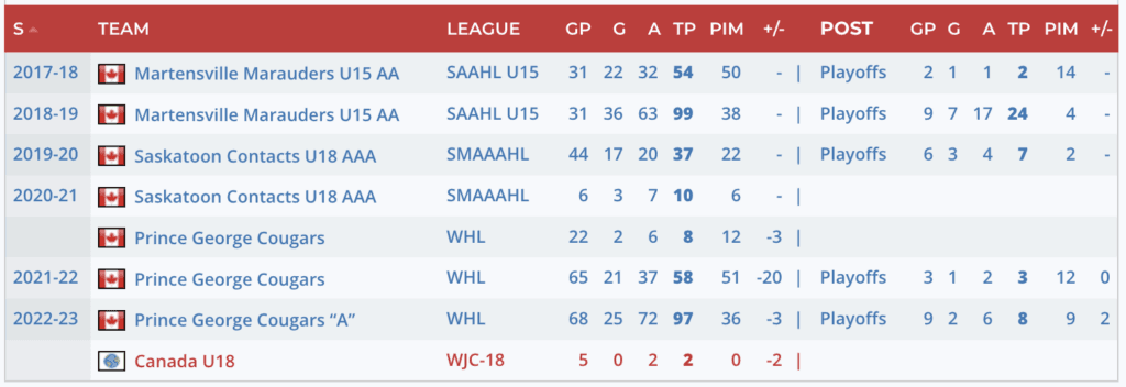 Scouting Report: “One of the best point producers in the WHL, Heidt was a huge part of Prince George’s resurgence this year. I know scouts were hoping to see him remain a consistent producer throughout the year – no issues there. It’s his play away from the puck that some are more concerned about.” – Steven Ellis, Daily Faceoff