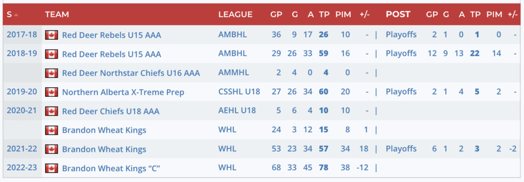 Scouting Report: “Perreault’s greatest concern this season was perceived reliance on his teammates to get stuff done. But you don’t break the 100-point barrier by accident, especially when so few players have managed to do so. The biggest hangup is his skating, but he plays a similar skilled offensive game to Lucas Raymond’s.” – Steven Ellis, Daily Faceoff