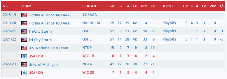 Scouting Report: “Small but feisty, Brindley went under the radar in Michigan, largely due to Fantilli’s heroics. He’s as competitive as it comes, and he’s a solid straight-line skater, but there’s still some room to improve from an overall puck skill and hockey sense standpoint. Another year of college will help.” – Steven Ellis, Daily Faceoff