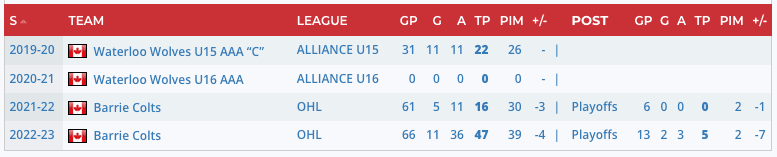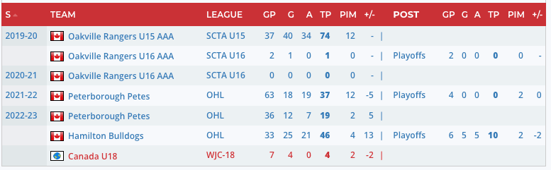 Scouting Report: “While most eyes have been on Brandt Clarke in Barrie this year, it’s hard to ignore Akey jumping up 30 points this year. He does an excellent job of rushing the puck down the ice from his own zone and he panic-passes the puck far less these days.” – Steven Ellis, Daily Faceoff