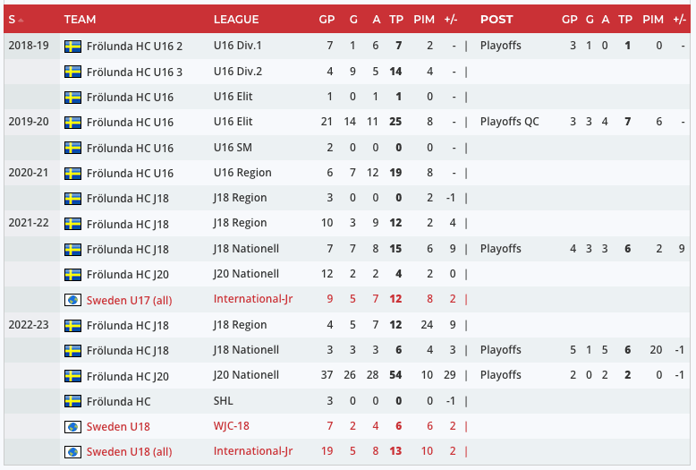 Scouting Report: “Dower Nilsson missed more than a month due to an injury, but was solid down the stretch and saw some SHL action, too. When he’s on his game, he tends to grab points in bursts. His 54 points and 1.46 points per game were the best among U-18 skaters in the Swedish U-20 league with at least 15 games played.” – Steven Ellis, Daily Faceoff
