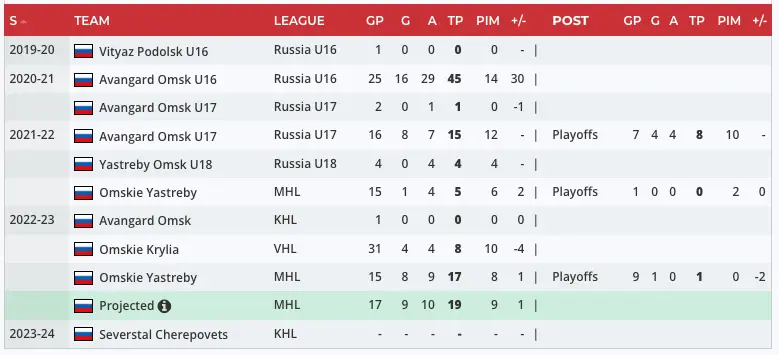 Scouting Report: “At 5-foot-8, Mukhanov is undersized, but it hasn’t stopped him from producing in Russia. He’s an excellent skater, plays a dynamic two-way game, and is difficult to take the puck off despite his size. You don’t see a ton of players his size play down the middle, so expect him to move to the wing in the NHL, if he makes it.” – Steven Ellis, Daily Faceoff