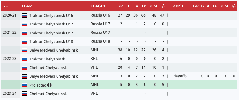 Scouting Report: “Rykov doesn’t just play well away from the puck when in pursuit or defending, he’s also a good off-puck player on offense. Rykov has a natural ability to find soft spots in defensive coverage and get open for centering passes. He does this both in the middle of the ice and down around the net, which puts him in good situations to act as the finisher on his line. His shot is just okay for now, and will require work if he’s going to play as a finisher vs. a creator or connector. Rykov’s skating is solid and doesn’t look too out of place when compared to his VHL peers. He does lack the required knee bend required, and isn’t the most creative skater, especially when he carries the puck.” – Jordan Harris, Dobber Prospects.