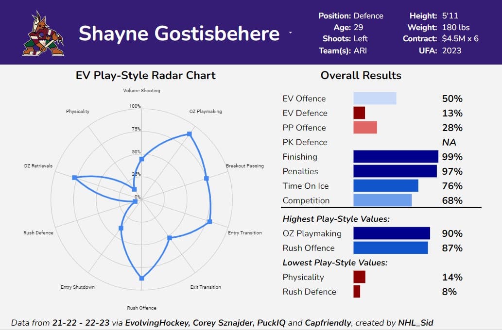 A while back, Elliotte Friedman mentioned that Gostisbehere is a player that the Oilers could be interested in. On an awful Arizona team, Gostisbehere has been strong in transition. He performs well in a system that allows him to move the puck.