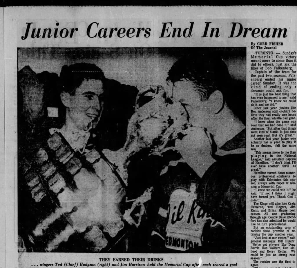 Born in Flin Flon, Manitoba, Hamilton spent his junior career playing in Edmonton with the Oil Kings. The team played in the Memorial Cup in each of Hamilton’s three seasons with the club. They lost to the Toronto Marlboros in 1964 and the Niagara Falls Flyers in 1965 before beating Bobby Orr and the Oshawa Generals in 1966.