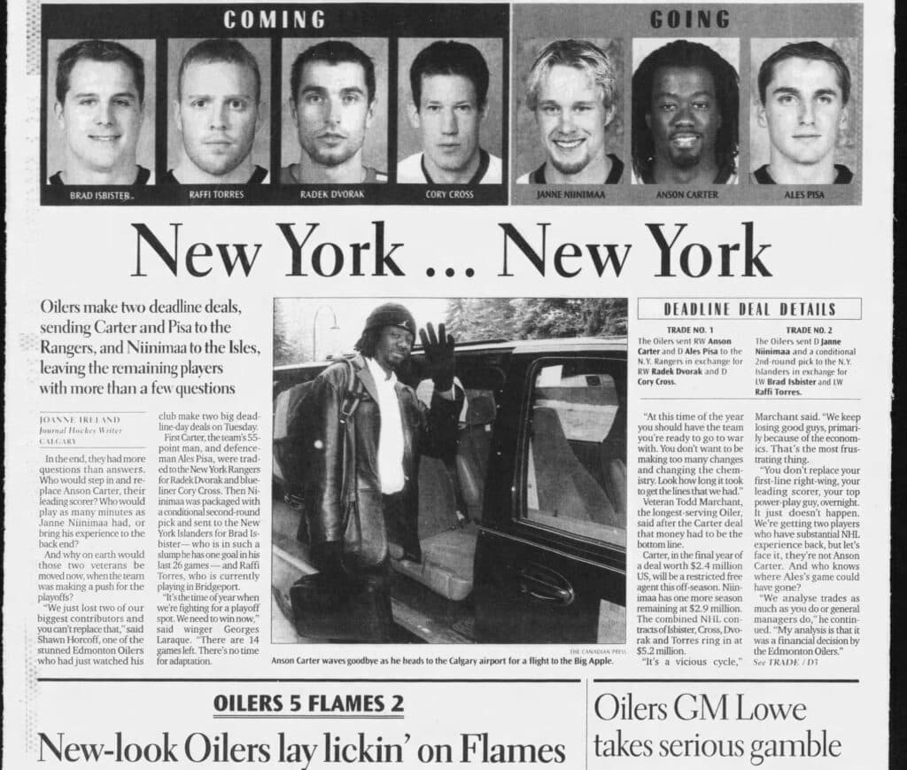 In 2002-03, Pisa started the season with the Bulldogs but was called up to the Oilers in November and became a regular on the team’s blueline. At that season’s trade deadline, Pisa was moved along with Anson Carter to the New York Rangers for Radek Dvorak and Cory Cross. The Oilers also moved defenceman Janne Niinimaa to the New York Islanders in exchange for Brad Isbister and Raffi Torres.