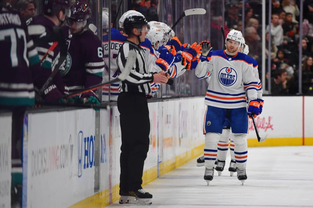 As for the McLeod-Draisaitl-Foegele line, the threesome combined for 10 points in that 7-2 waxing of the Anaheim Ducks to complete the California swing. Foegele put up a career-high five points with 2-3-5, while McLeod had 1-1-2 and Draisaitl 1-2-3.