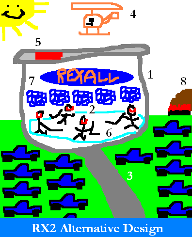 According to the same article in the Journal: “It’s the first proposal for a new arena made public since Mayor Stephen Mandel began talking about the idea almost two years ago.” This means that alternate proposals will be made over the coming months. We have actually been thinking about the new arena for some time and have come up with an alternative design of our own shown in the diagram above. Keep in mind that this drawing is perfectly to scale and must be built exactly as shown. RX2 (Big ups to Chris) features the following architectural features: