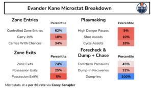 Of course, I’m not suggesting that Kane is some terrible player, because he isn’t. He undeniably provides value in some facets, and Edmonton has largely benefitted from his goal-scoring capabilities. However, overemphasizing his box-score totals, and not looking deeper, could end up being a poor decision.