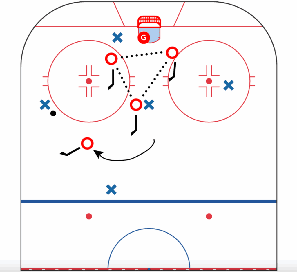 Even a simple one-touch pass from the flank to the slot can be dangerous without anyone protecting the middle of the ice.