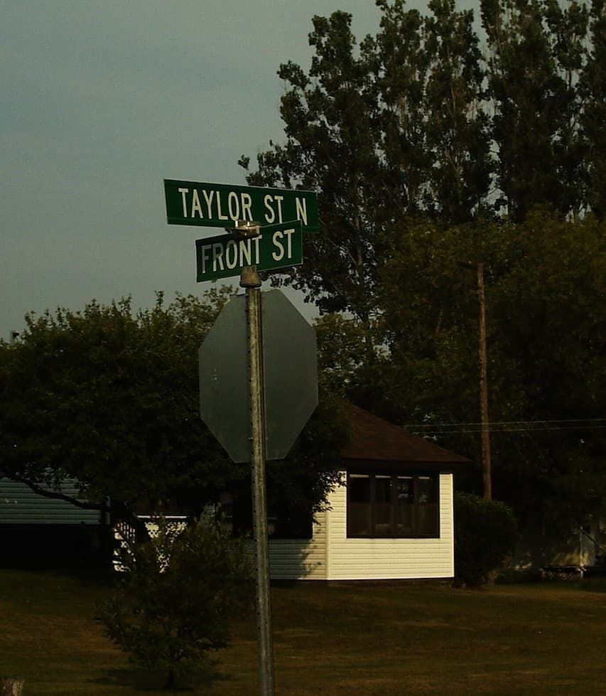 From there, I felt a mighty weight lifted off my shoulders and we carried on with our trip through Ontario. 17 days later as we passed through the middle of that continent disguised as a province, we came upon a sign on the side of the road. It was a small town and to come across a Taylor Street sign was in of itself cool but no big deal.
