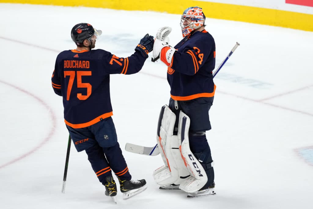 “While there are bound to be bumps in the road along the way for Bouchard, he looks ready to make a case for staying in the line-up on a blue line that’s offering us a glimpse of the future today. With Bouchard, Ethan Bear, Caleb Jones and William Lagesson in the mix with Darnell Nurse, injured Oscar Klefbom, Adam Larsson, Tyson Barrie, Slater Koekkoek and Russell, the Oilers have options.” Ethan Bear, Caleb Jones and William Lagesson? Sure.