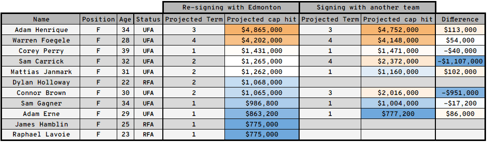 Today, we’re going to dive into what Evolving Hockey thinks the Oilers’ free agents would receive re-signing in Edmonton, and on the open market.