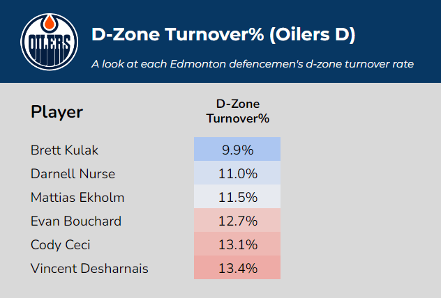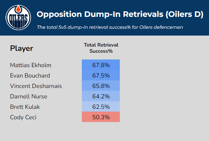 Here’s how Edmonton’s defencemen have fared when retrieving opposition dump-ins: