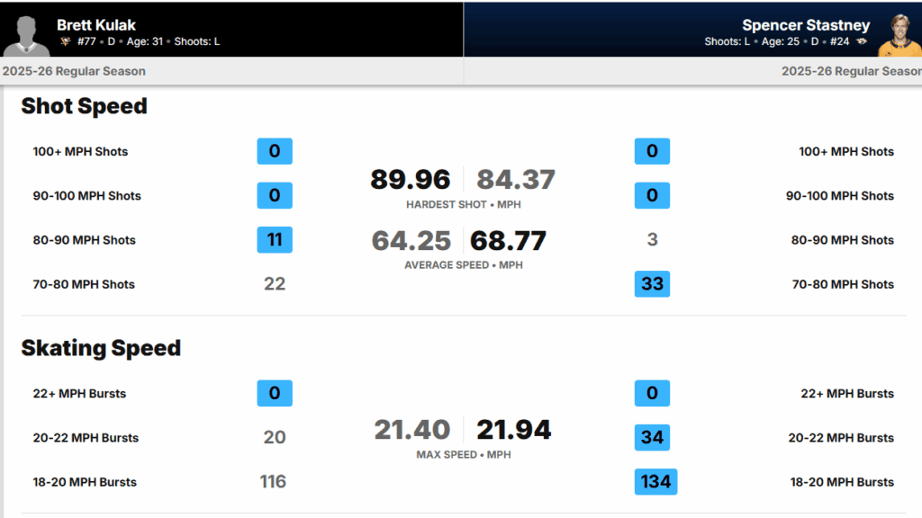 Stastney is six years younger and almost $2m cheaper than Kulak. He is an RFA at the end of the season and won’t command a big raise. The one thing he doesn’t have is Kulak’s playoff experience. Kulak has been solid in the playoffs, and that can’t be overlooked. When Ekholm went down last year, Kulak ended up playing the second most 5×5 minutes on the Oilers and performed well.
