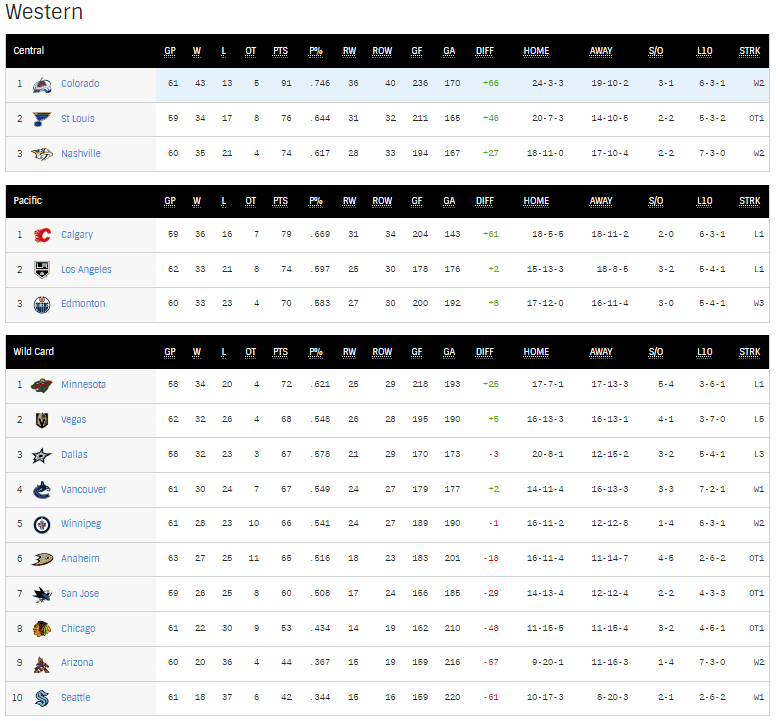 Welcome to the first-ever Around the West — a daily look at what is happening around the NHL’s Western Conference. Why are we taking a look, you may ask? Well, as it stands the Oilers are firmly entrenched in a chaotic battle for playoff positioning with oh, seven other teams.