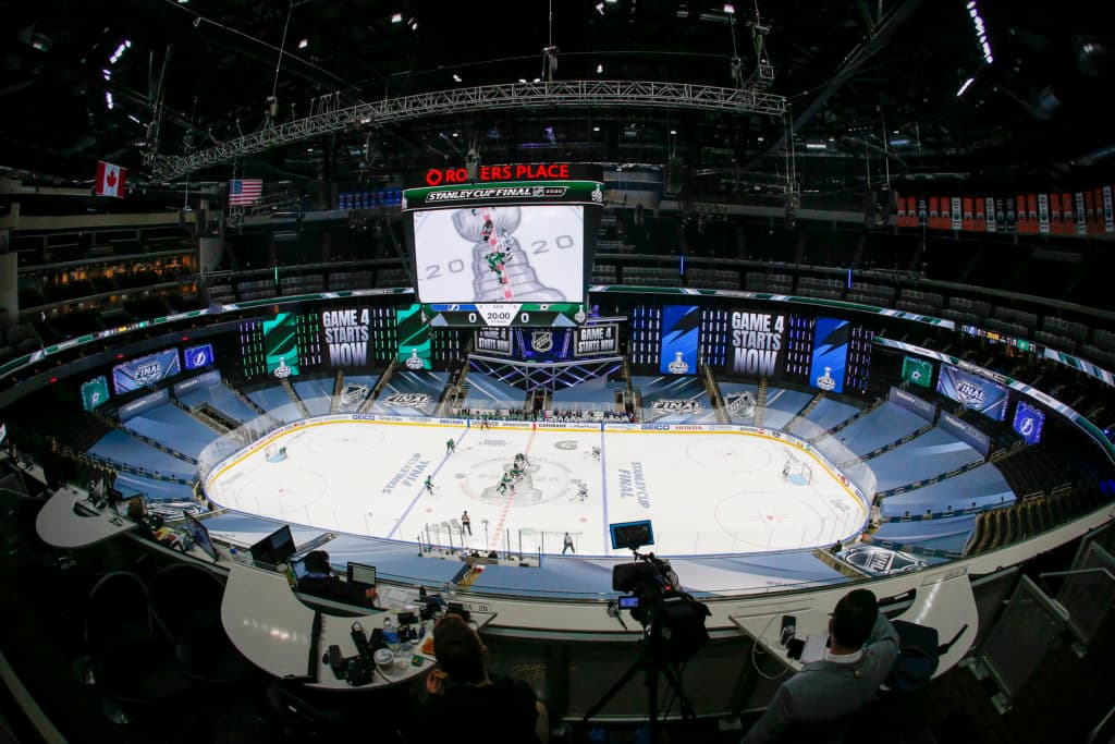 Sep 25, 2020; Edmonton, Alberta, CAN; A view of the ice and the arena during the face-off between the Dallas Stars and the Tampa Bay Lightning in game four of the 2020 Stanley Cup Final at Rogers Place.