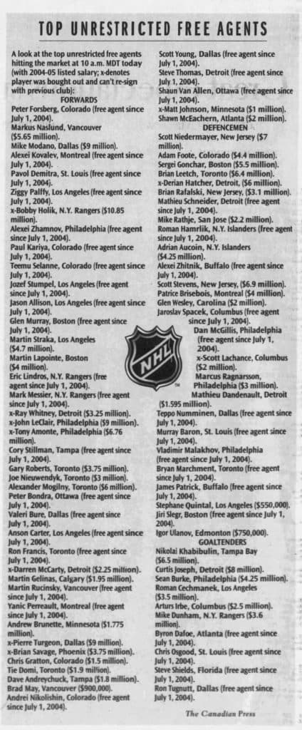 That was all going to change in the new NHL. With the implementation of a salary cap that would limit the spending of the league’s richest clubs while simultaneously driving down player salaries, the Oilers would be put on a level playing field with the rest of the league. After watching stars like Curtis Joseph and Doug Weight leave in recent years because the Oilers couldn’t afford their price tag, the tables were finally going to turn.