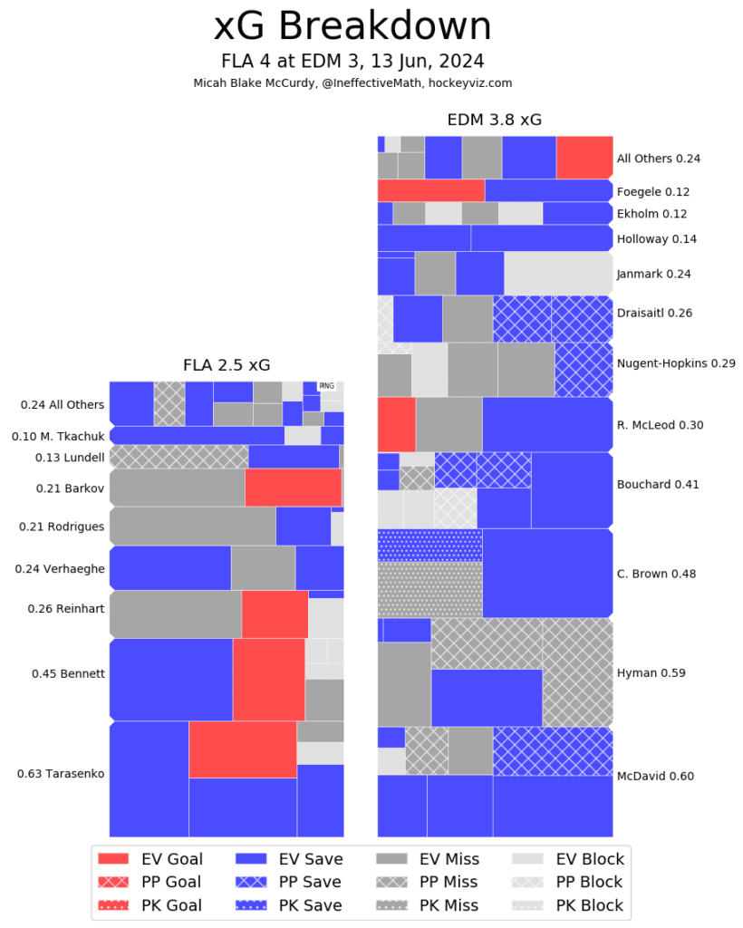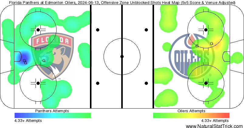 Note: This is a great example of quality vs. quantity. The Oilers may have got more shot attempts off overall, but the Panthers had the advantage in quality shots.