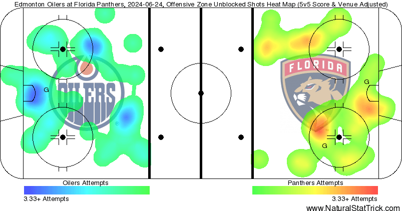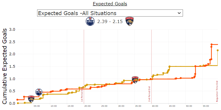 Corsi King – Mattias Ekholm (69.69 CF%) led the team in disparity while partner Bouchard (66.91 percent) led the team in total chances achieved. Roughly 23 minutes at 5v5 by the duo as Knoblauch lent on them – rightfully so they were a dynamite pairing all playoffs long. Connor McDavid (60.81 percent) led for all the forwards in overall shot attempts with usual suspects Zach Hyman (59.92 percent) and Leon Draisaitl (63.39 percent) right behind him. The top players for Edmonton came to play they just could not find that last goal. The last five minutes of the game was Bobrovsky making five-alarm saves every second stop. It was by no means an effort worth a scolding – they were one goal short of the ultimate goal.