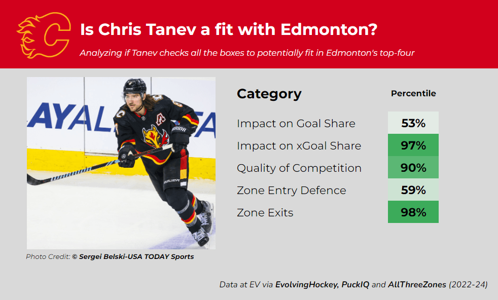 It does seem that Edmonton has shown some interest in Tanev, who is in the final year of a four-year contract with a $4.5M AAV. Pierre Lebrun has reported that Calgary’s asking price could be a 2nd round pick and another asset, which is fairly reasonable in my opinion, although it is worth mentioning that Edmonton may have to pay a little extra (since it’s Calgary).