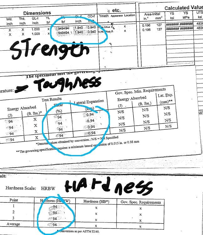 Then our boy Drew shot us an email "I did a tensile test on some steel today and the ultimate strength of it was 949494Lbs and it elongated 94%. I further did some hardness testing and it was a heading of 94 HRB hardness. Followed by impact testing of 94 joules of energy and 945 shear with lateral expansion on 0.94mm