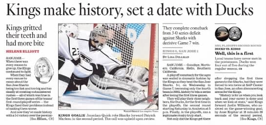 Most recently, the LA Kings came back from a 3-0 deficit to beat the San Jose Sharks, and eventually win the Stanley Cup.