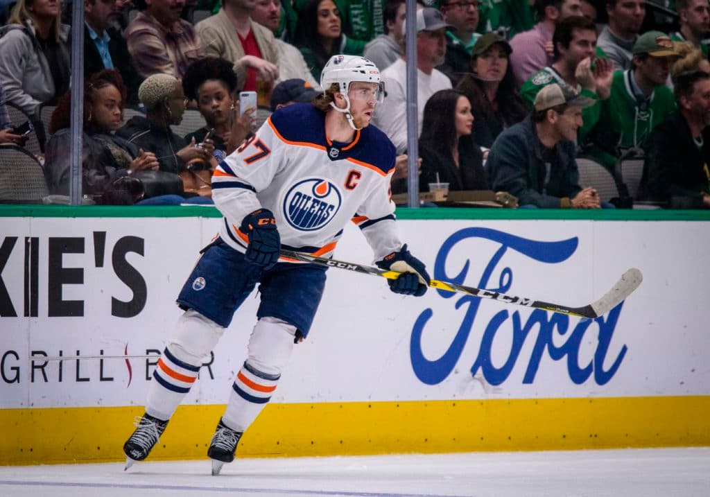 Mar 3, 2020; Dallas, Texas, USA; Edmonton Oilers center Connor McDavid (97) in action during the game between the Stars and the Oilers at the American Airlines Center. Mandatory Credit: Jerome Miron-USA TODAY Sports