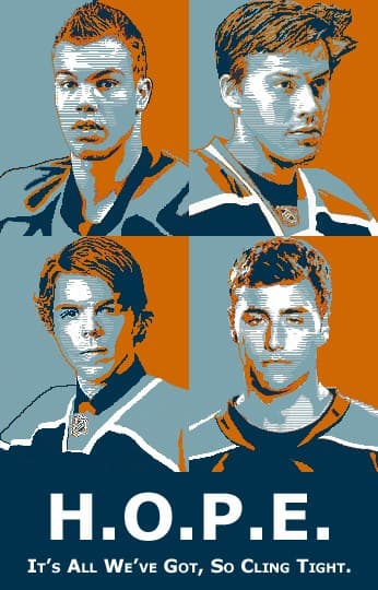 At the end of the day, this doesn’t really mean much of anything apart from noticing that Linus Omark likes to do twirls before shootout moves. Did I really need to spend 15 minutes writing a review of his goals? Probably not, but there isn’t really a whole lot else going on right now and I also like having excuses to pull out this old ‘HOPE’ Photoshop from back in the rebuild 2.0 days. Remember those days? I ‘member.
