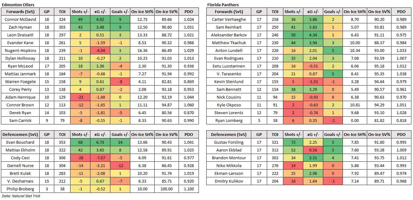 Comparing the Edmonton Oilers and Florida Panthers at even-strength