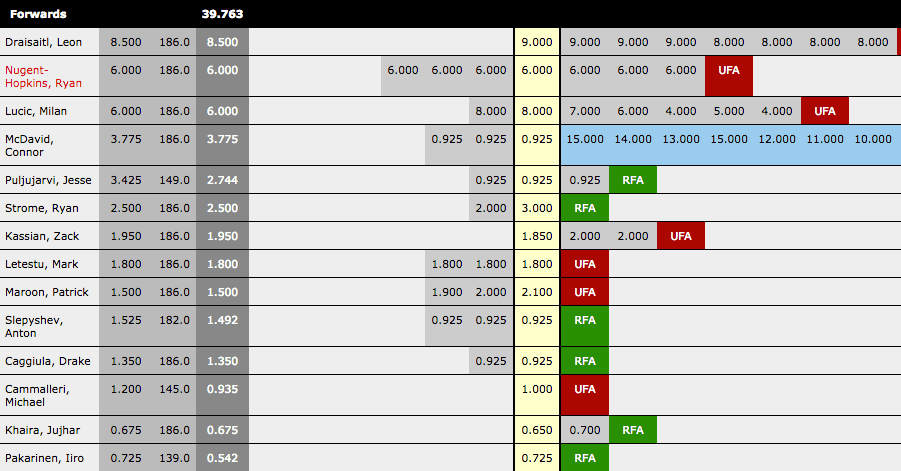 The bad news for the Oilers is that five players — McDavid, Lucic, Draisaitl, Russel and Sekera — suck up $36.5-million (almost 50%) of the estimated $80ish-million cap ceiling for next season, leaving the team with only around $44 million to spend on its 18 remaining roster spots.