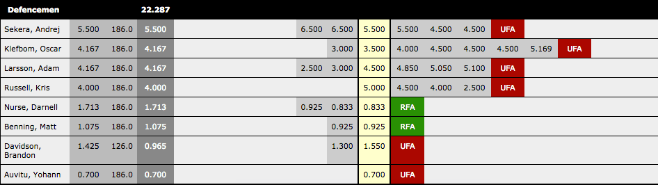 Aside from the nearly $15-million in cap space devoured by two big-bodied forwards, the team’s blue line also boasts a couple contracts that will be nearly impossible to get out from under, with one, in particular, looking especially bad.
