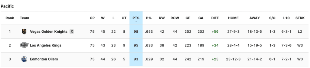 The Kings beat the Utah Hockey Club on Thursday to maintain their two-point lead over the Oilers in the standings. The Vegas Golden Knights fell to the Winnipeg Jets, so both L.A. and Edmonton gained some ground in the race for the top spot in the Pacific Division.