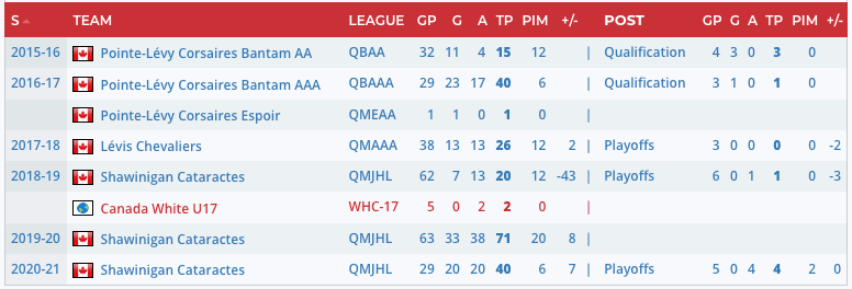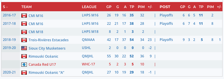 “Bourgault is a skilled and intelligent attacker who showcased superb creativity and thrilling offensive tools tonight. The 6-foot winger is an incredible puckhandler who deeply enjoys expressing his imagination with brilliant dekes and flashy moves. Thanks to his swift, flamboyant mitts, Bourgault flashed the ability to beat any defender in 1v1’s, or even split the defense right through the middle lane. His electrifying puck control allowed him to play through traffic and escape traps with ease. Adding his tremendous footwork and lateral agility to the mix, the 2021 draft eligible becomes a highly dangerous threat in tight spaces. He showcased skilled puck protection, keeping the disc out of reach with his slick hands and using his body as a shield along the boards. His high-end puck skills can also be seen through his smooth pass reception abilities, which allow for clean, efficient transition. Bourgault is a splendid skater who has developed a liking towards using crossovers to build up speed on the outbreak, and attack defenses with different angles and deceptive cuts. His quick, electric feet are evident on these accelerations, but he could add even more power on his inside foot pushes to generate additional speed. The right-handed forward displayed delightful confidence bringing the puck up the ice, as he kept his head up and jump in open lanes eagerly. Despite the ability to create for himself, Bourgault is an extremely generous passer, willing and looking to get his teammates involved in the play at all time.” – Andy Lehoux